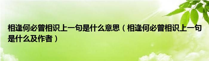大家好,小高来为大家解答以上问题。相逢何必曾相识上一句是什么意思,相逢何必曾相识上一句是什么及作者很多人还不知道,现在让我们一起来看看吧!