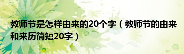 大家好,小高来为大家解答以上问题。教师节是怎样由来的20个字,教师节的由来和来历简短20字很多人还不知道,现在让我们一起来看看吧!