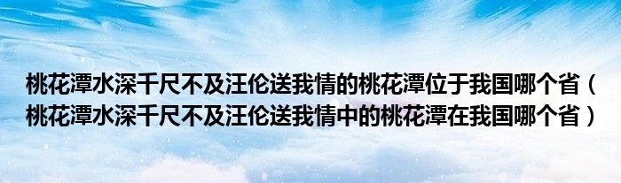 大家好,小高来为大家解答以上问题。桃花潭水深千尺不及汪伦送我情的桃花潭位于我国哪个省,桃花潭水深千尺不及汪伦送我情中的桃花潭在我国哪个省很多人还不知道,现在让我们一起来看看吧!