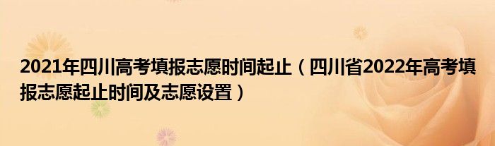 大家好,小高来为大家解答以上问题。2021年四川高考填报志愿时间起止,四川省2022年高考填报志愿起止时间及志愿设置很多人还不知道,现在让我们一起来看看吧!