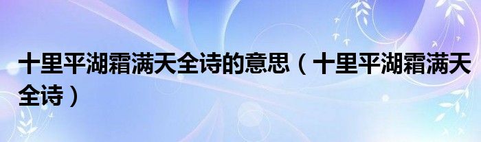 大家好,小高来为大家解答以上问题。十里平湖霜满天全诗的意思,十里平湖霜满天全诗很多人还不知道,现在让我们一起来看看吧!