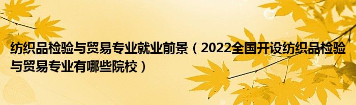 大家好,小高来为大家解答以上问题。纺织品检验与贸易专业就业前景,2022全国开设纺织品检验与贸易专业有哪些院校很多人还不知道,现在让我们一起来看看吧!