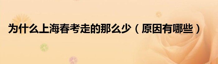 大家好,小高来为大家解答以上问题。为什么上海春考走的那么少,原因有哪些很多人还不知道,现在让我们一起来看看吧!