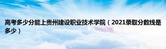 大家好,小高来为大家解答以上问题。高考多少分能上贵州建设职业技术学院,2021录取分数线是多少很多人还不知道,现在让我们一起来看看吧!