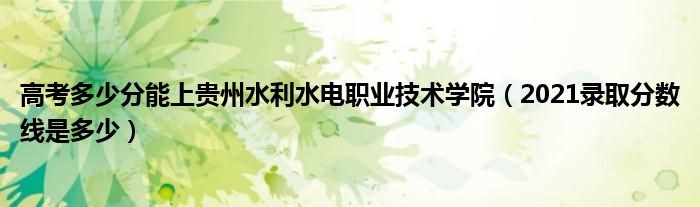 大家好,小高来为大家解答以上问题。高考多少分能上贵州水利水电职业技术学院,2021录取分数线是多少很多人还不知道,现在让我们一起来看看吧!