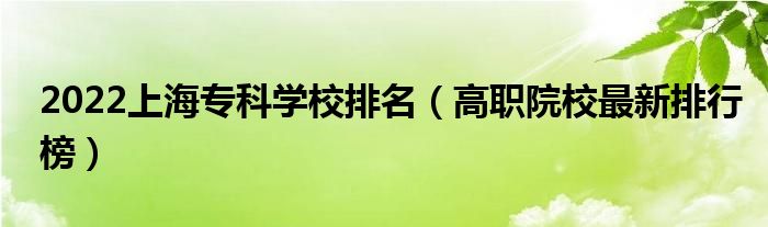 大家好,小高来为大家解答以上问题。2022上海专科学校排名,高职院校最新排行榜很多人还不知道,现在让我们一起来看看吧!