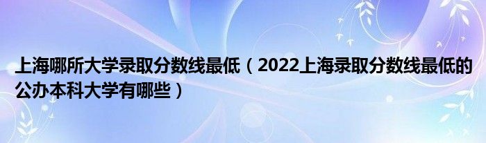 大家好,小高来为大家解答以上问题。上海哪所大学录取分数线最低,2022上海录取分数线最低的公办本科大学有哪些很多人还不知道,现在让我们一起来看看吧!