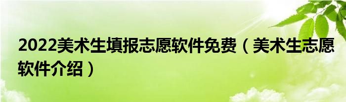 大家好,小高来为大家解答以上问题。2022美术生填报志愿软件免费,美术生志愿软件介绍很多人还不知道,现在让我们一起来看看吧!