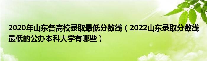 大家好,小高来为大家解答以上问题。2020年山东各高校录取最低分数线,2022山东录取分数线最低的公办本科大学有哪些很多人还不知道,现在让我们一起来看看吧!