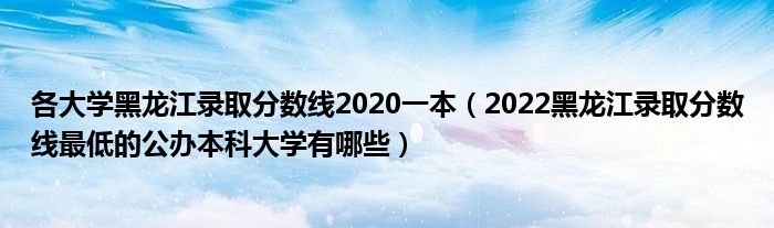 大家好,小高来为大家解答以上问题。各大学黑龙江录取分数线2020一本,2022黑龙江录取分数线最低的公办本科大学有哪些很多人还不知道,现在让我们一起来看看吧!