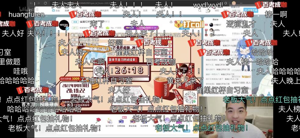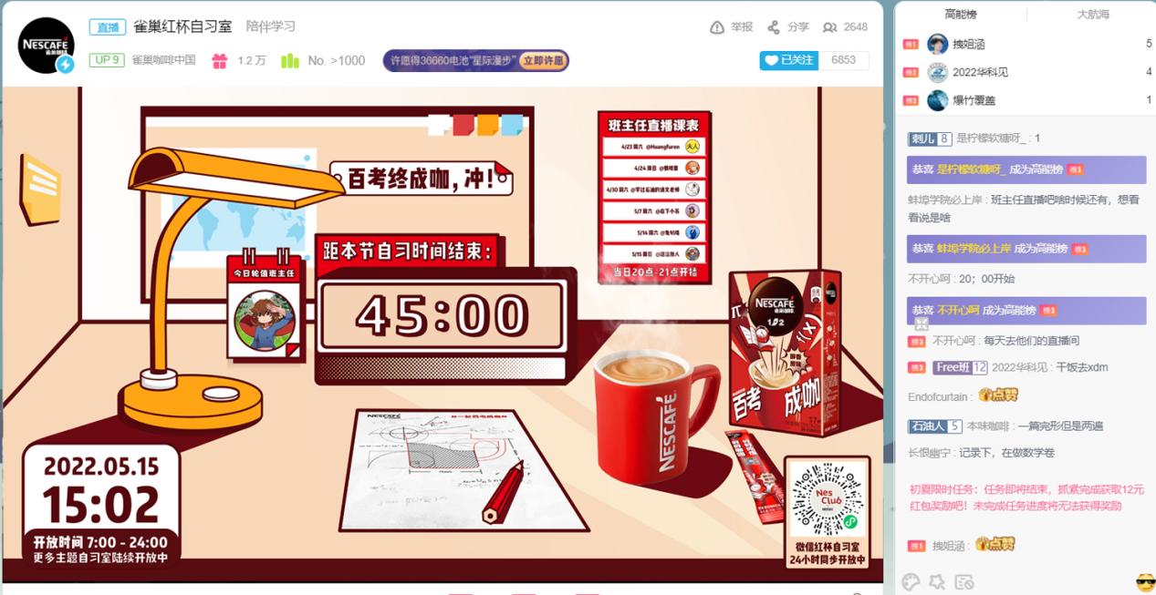 图为:雀巢咖啡红杯自习室特邀B站UP主直播