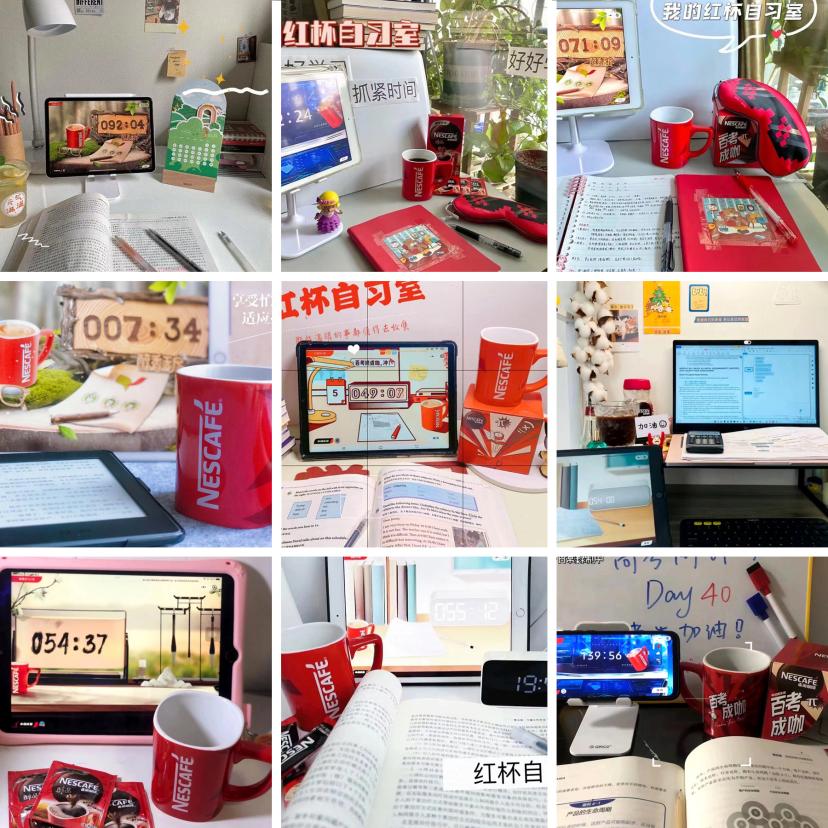 图为:雀巢咖啡红杯自习室主题风格