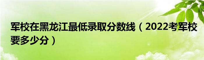 大家好,小高来为大家解答以上问题。军校在黑龙江最低录取分数线,2022考军校要多少分很多人还不知道,现在让我们一起来看看吧!