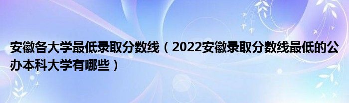 大家好,小高来为大家解答以上问题。安徽各大学最低录取分数线,2022安徽录取分数线最低的公办本科大学有哪些很多人还不知道,现在让我们一起来看看吧!