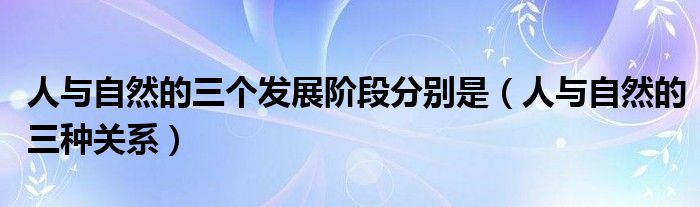 大家好,小高来为大家解答以上问题。人与自然的三个发展阶段分别是,人与自然的三种关系很多人还不知道,现在让我们一起来看看吧!