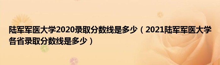 大家好,小高来为大家解答以上问题。陆军军医大学2020录取分数线是多少,2021陆军军医大学各省录取分数线是多少很多人还不知道,现在让我们一起来看看吧!