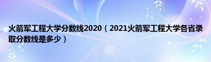大家好,小高来为大家解答以上问题。火箭军工程大学分数线2020,2021火箭军工程大学各省录取分数线是多少很多人还不知道,现在让我们一起来看看吧!