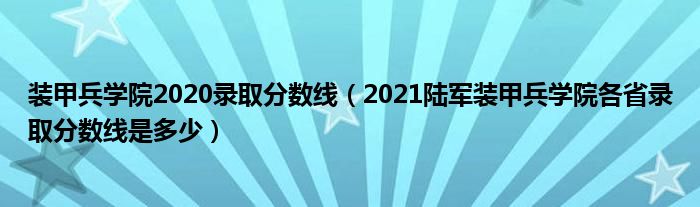 大家好,小高来为大家解答以上问题。装甲兵学院2020录取分数线,2021陆军装甲兵学院各省录取分数线是多少很多人还不知道,现在让我们一起来看看吧!