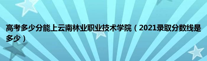 大家好,小高来为大家解答以上问题。高考多少分能上云南林业职业技术学院,2021录取分数线是多少很多人还不知道,现在让我们一起来看看吧!