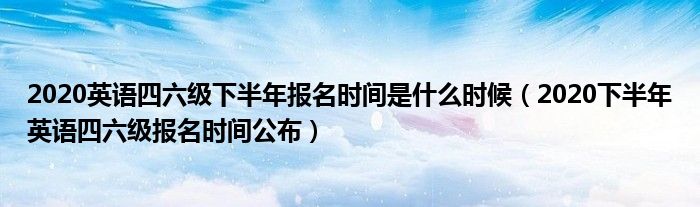 大家好,小高来为大家解答以上问题。2020英语四六级下半年报名时间是什么时候,2020下半年英语四六级报名时间公布很多人还不知道,现在让我们一起来看看吧!