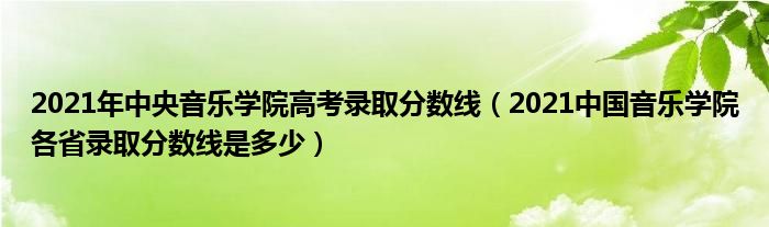 大家好,小高来为大家解答以上问题。2021年中央音乐学院高考录取分数线,2021中国音乐学院各省录取分数线是多少很多人还不知道,现在让我们一起来看看吧!