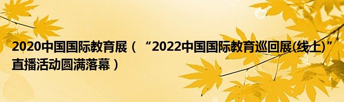 大家好,小高来为大家解答以上问题。2020中国国际教育展,“2022中国国际教育巡回展(线上)”直播活动圆满落幕很多人还不知道,现在让我们一起来看看吧!