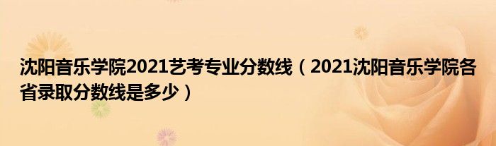 大家好,小高来为大家解答以上问题。沈阳音乐学院2021艺考专业分数线,2021沈阳音乐学院各省录取分数线是多少很多人还不知道,现在让我们一起来看看吧!