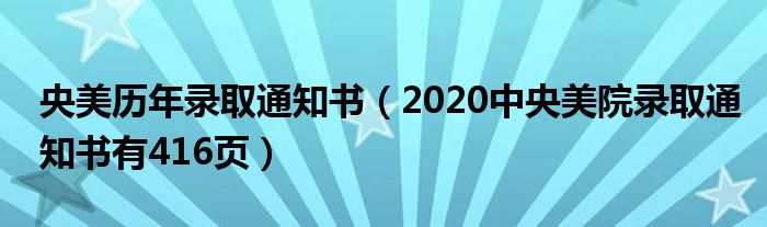 大家好,小高来为大家解答以上问题。央美历年录取通知书,2020中央美院录取通知书有416页很多人还不知道,现在让我们一起来看看吧!