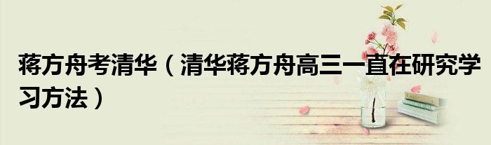 大家好,小高来为大家解答以上问题。蒋方舟考清华,清华蒋方舟高三一直在研究学习方法很多人还不知道,现在让我们一起来看看吧!