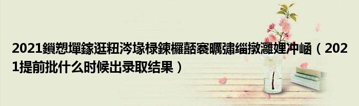 大家好,小高来为大家解答以上问题。2021鎻愬墠鎵逛粈涔堟椂鍊欏嚭褰曞彇缁撴灉娌冲崡,2021提前批什么时候出录取结果很多人还不知道,现在让我们一起来看看吧!