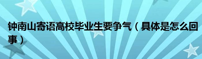 大家好,小高来为大家解答以上问题。钟南山寄语高校毕业生要争气,具体是怎么回事很多人还不知道,现在让我们一起来看看吧!