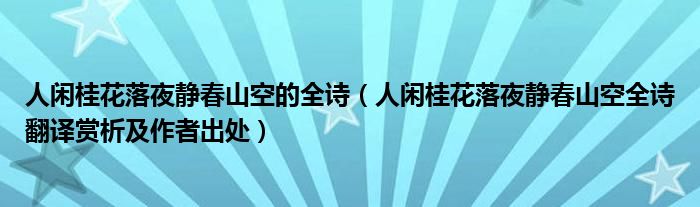8、以上《人闲桂花落,夜静春山空。全诗全文翻译全文赏析及作者出处》有高三网小编收集整理,更多古诗词全文翻译赏析及作者出处请查看高三网语文古诗词频道。