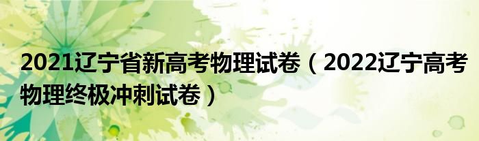 大家好,小高来为大家解答以上问题。2021辽宁省新高考物理试卷,2022辽宁高考物理终极冲刺试卷很多人还不知道,现在让我们一起来看看吧!1、2022辽宁高考物理终极冲刺试卷。本文到此结束,希望对大家有所帮助。