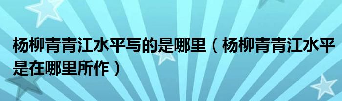 大家好,小高来为大家解答以上问题。杨柳青青江水平写的是哪里,杨柳青青江水平是在哪里所作很多人还不知道,现在让我们一起来看看吧!