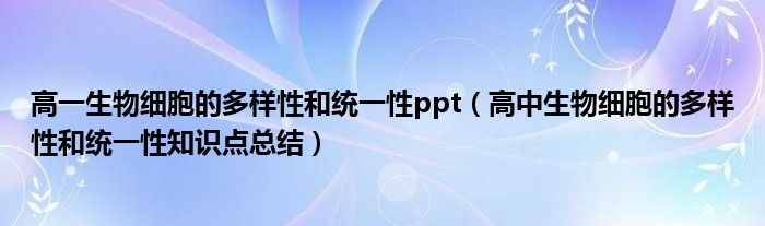 大家好,小高来为大家解答以上问题。高一生物细胞的多样性和统一性ppt,高中生物细胞的多样性和统一性知识点总结很多人还不知道,现在让我们一起来看看吧!