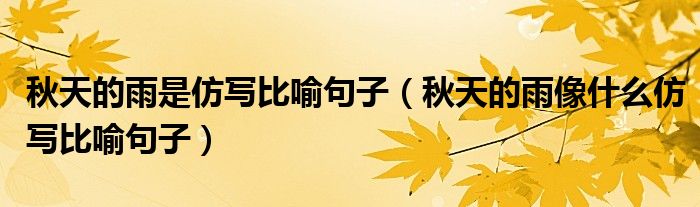 大家好,小高来为大家解答以上问题。秋天的雨是仿写比喻句子,秋天的雨像什么仿写比喻句子很多人还不知道,现在让我们一起来看看吧!