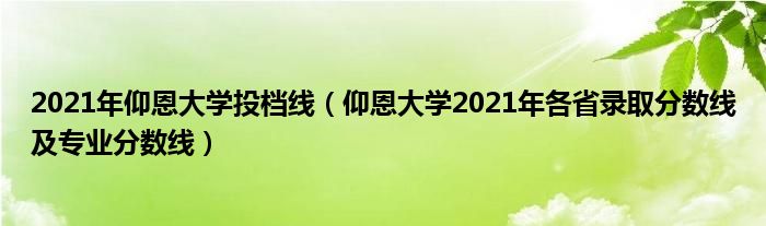 大家好,小高来为大家解答以上问题。2021年仰恩大学投档线,仰恩大学2021年各省录取分数线及专业分数线很多人还不知道,现在让我们一起来看看吧!