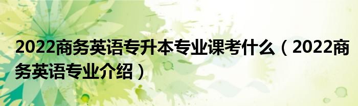 大家好,小高来为大家解答以上问题。2022商务英语专升本专业课考什么,2022商务英语专业介绍很多人还不知道,现在让我们一起来看看吧!
