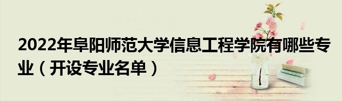 大家好,小高来为大家解答以上问题。2022年阜阳师范大学信息工程学院有哪些专业,开设专业名单很多人还不知道,现在让我们一起来看看吧!
