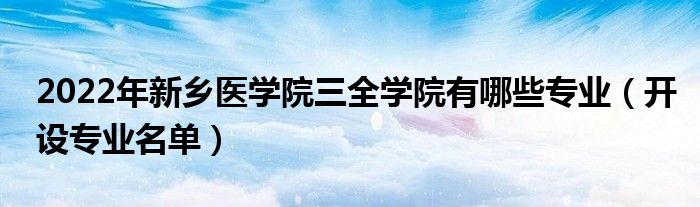 大家好,小高来为大家解答以上问题。2022年新乡医学院三全学院有哪些专业,开设专业名单很多人还不知道,现在让我们一起来看看吧!