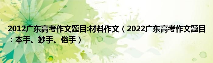 大家好,小高来为大家解答以上问题。2012广东高考作文题目:材料作文,2022广东高考作文题目:本手、妙手、俗手很多人还不知道,现在让我们一起来看看吧!