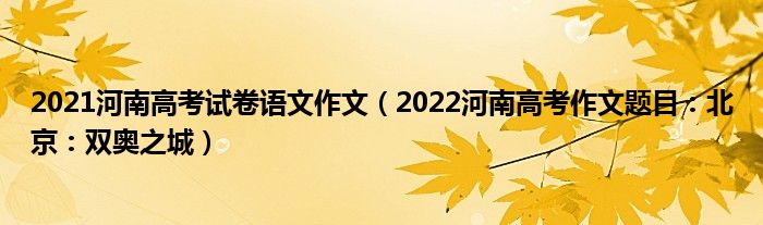 大家好,小高来为大家解答以上问题。2021河南高考试卷语文作文,2022河南高考作文题目:北京:双奥之城很多人还不知道,现在让我们一起来看看吧!