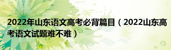 大家好,小高来为大家解答以上问题。2022年山东语文高考必背篇目,2022山东高考语文试题难不难很多人还不知道,现在让我们一起来看看吧!