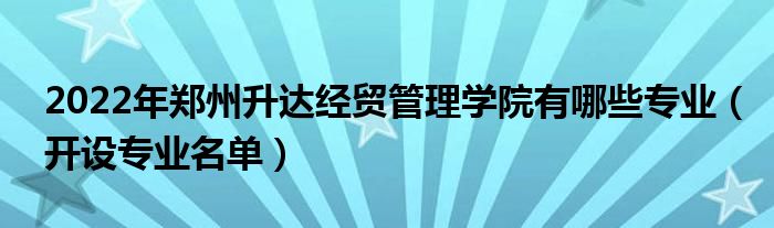 大家好,小高来为大家解答以上问题。2022年郑州升达经贸管理学院有哪些专业,开设专业名单很多人还不知道,现在让我们一起来看看吧!