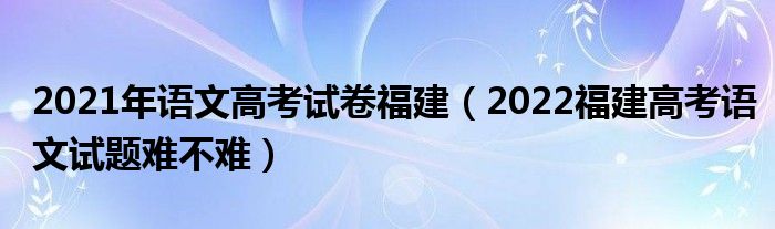 大家好,小高来为大家解答以上问题。2021年语文高考试卷福建,2022福建高考语文试题难不难很多人还不知道,现在让我们一起来看看吧!