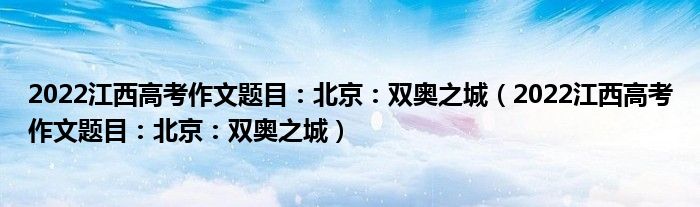 大家好,小高来为大家解答以上问题。2022江西高考作文题目:北京:双奥之城,2022江西高考作文题目:北京:双奥之城很多人还不知道,现在让我们一起来看看吧!