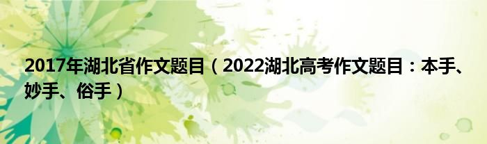 大家好,小高来为大家解答以上问题。2017年湖北省作文题目,2022湖北高考作文题目:本手、妙手、俗手很多人还不知道,现在让我们一起来看看吧!
