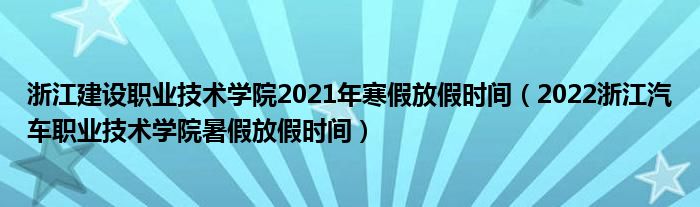 大家好,小高来为大家解答以上问题。浙江建设职业技术学院2021年寒假放假时间,2022浙江汽车职业技术学院暑假放假时间很多人还不知道,现在让我们一起来看看吧!