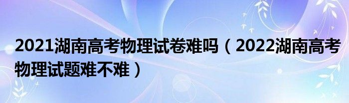 大家好,小高来为大家解答以上问题。2021湖南高考物理试卷难吗,2022湖南高考物理试题难不难很多人还不知道,现在让我们一起来看看吧!