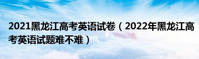 大家好,小高来为大家解答以上问题。2021黑龙江高考英语试卷,2022年黑龙江高考英语试题难不难很多人还不知道,现在让我们一起来看看吧!